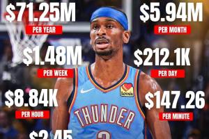 体育资讯07月05日讯 此前据名记Shams报道,亚历山大与雷霆签下一份4年2.85亿的顶薪提前续约合同。